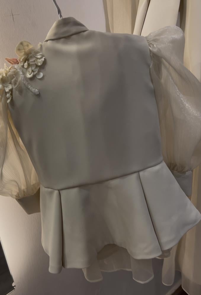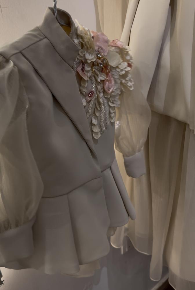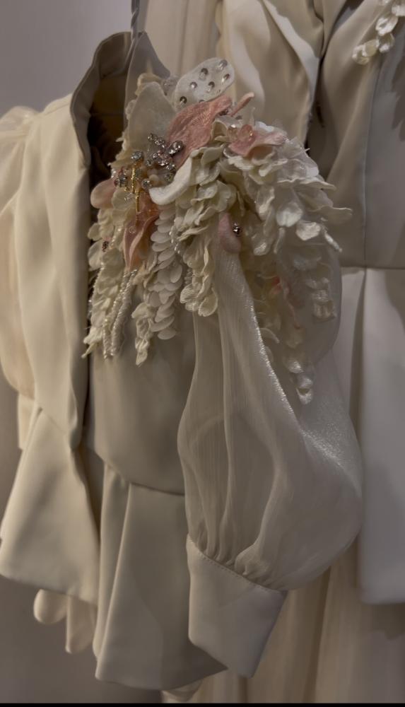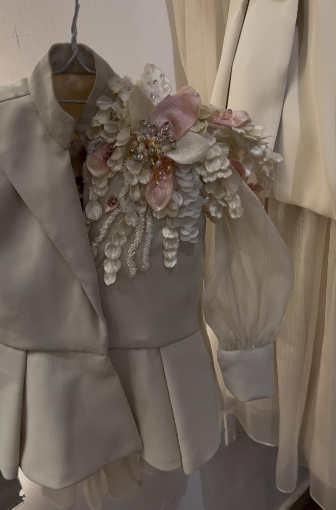 بدلة اطفال مميزه من قطعتين ( تنورة وبليزر ) مشغول بتطريز الورد الفاخر وخرز السيلان المميز