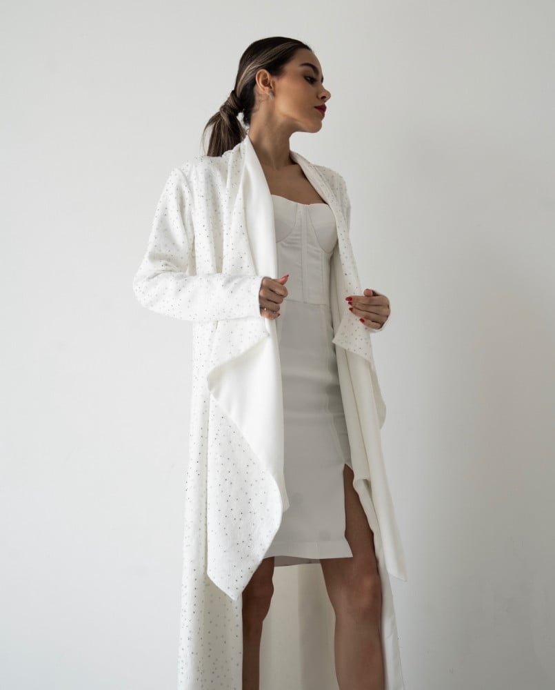 تصميم ملفت وجذاب صنع بعناية لتكوني من افضل الاطلالات في مناسبتكم مكون من قطعتين فستان بقصة كورسيه وجاكيت بقصه حصرية ومميزة