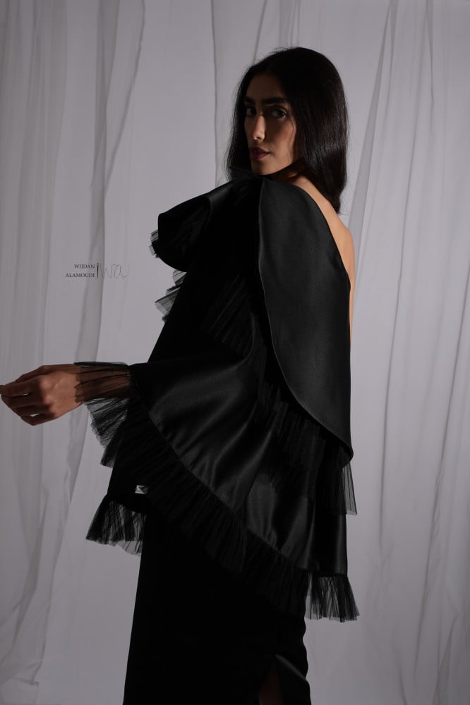 اخترنا لك اللون الاسود لتكوني جذابة ومميزه في مناسبتك صنع الفستان خصيصا لمحبي التألق والتميز والفخامة .. ♥️