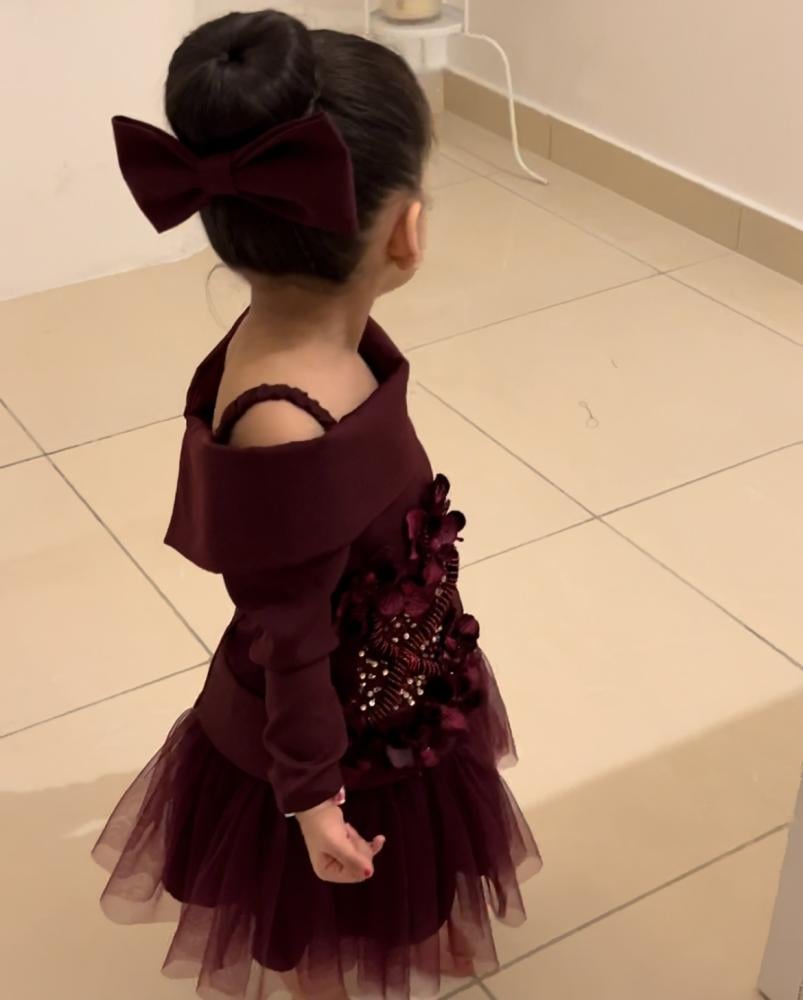 بدلة اطفال مميزه من قطعتين ( تنورة وبلوزه ) مشغول بتطريز الورد الفاخر وخرز السيلان المميز
