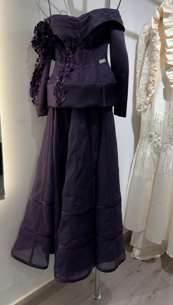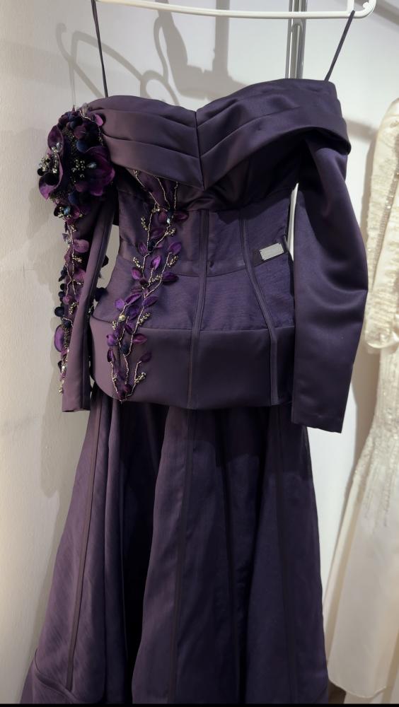 فستان ليلكي مميز من قماش التفتة والجازار الفاخر