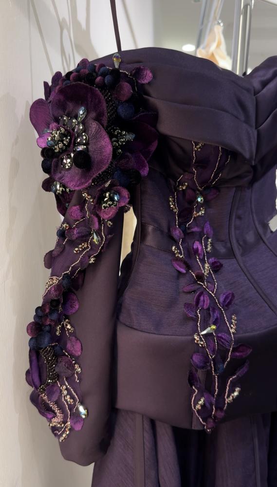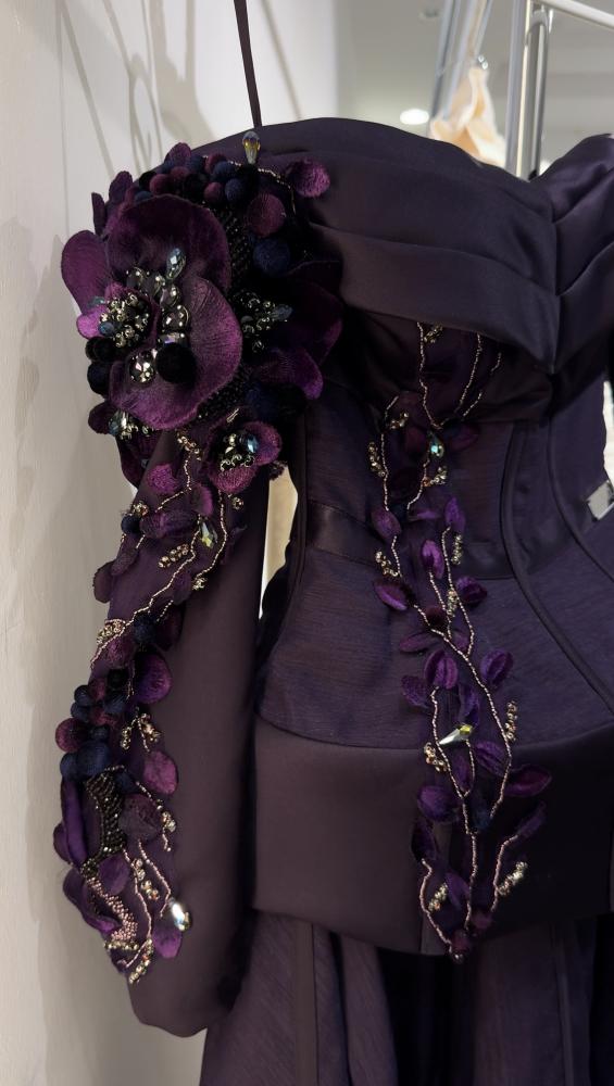 من اكثر القطع تميزا في الشكل فهي تجمع بين الفخامة والنعومه صنع من خامة التفتة والجازار مضافا اليه تطريز بارز مميز مشغولبالكريستال والخرز الفاخر