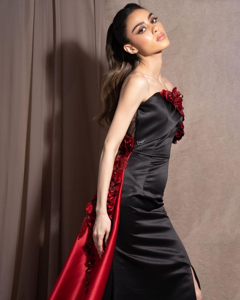 اخترنا لك اللون الاسود لتكوني جذابة ومميزه في مناسبتك صنع الفستان خصيصا لمحبي التألق والتميز والفخامة .. ♥️