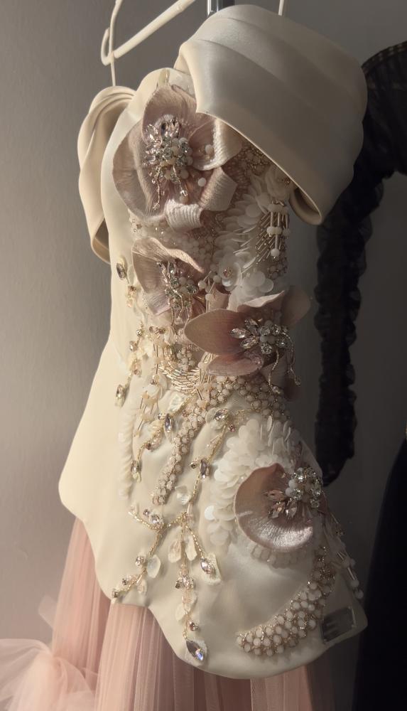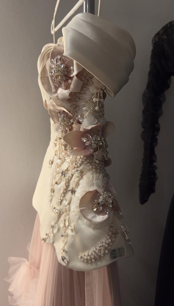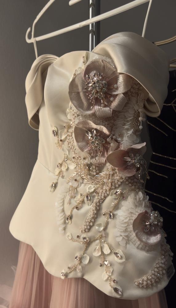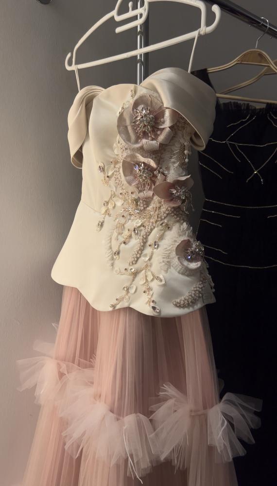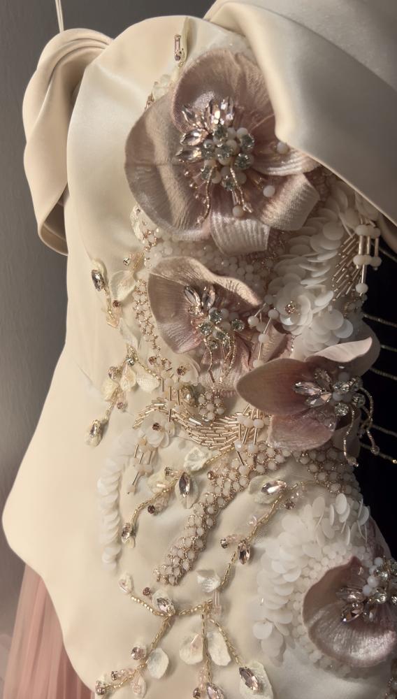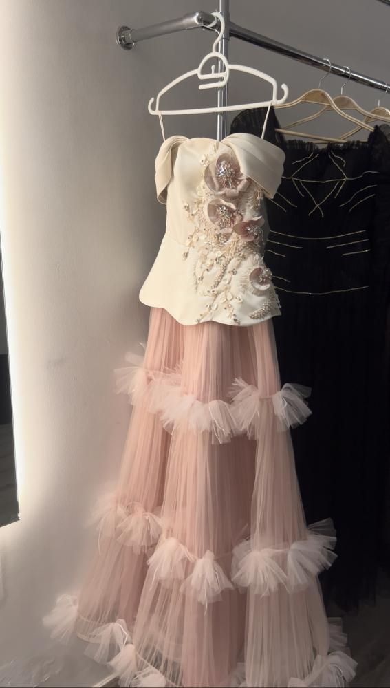 اخترنا لك البيج والوردي لتكوني جذابة ومميزه في مناسبتك صنع الفستان خصيصا لمحبي التألق والتميز والفخامة .. ♥️