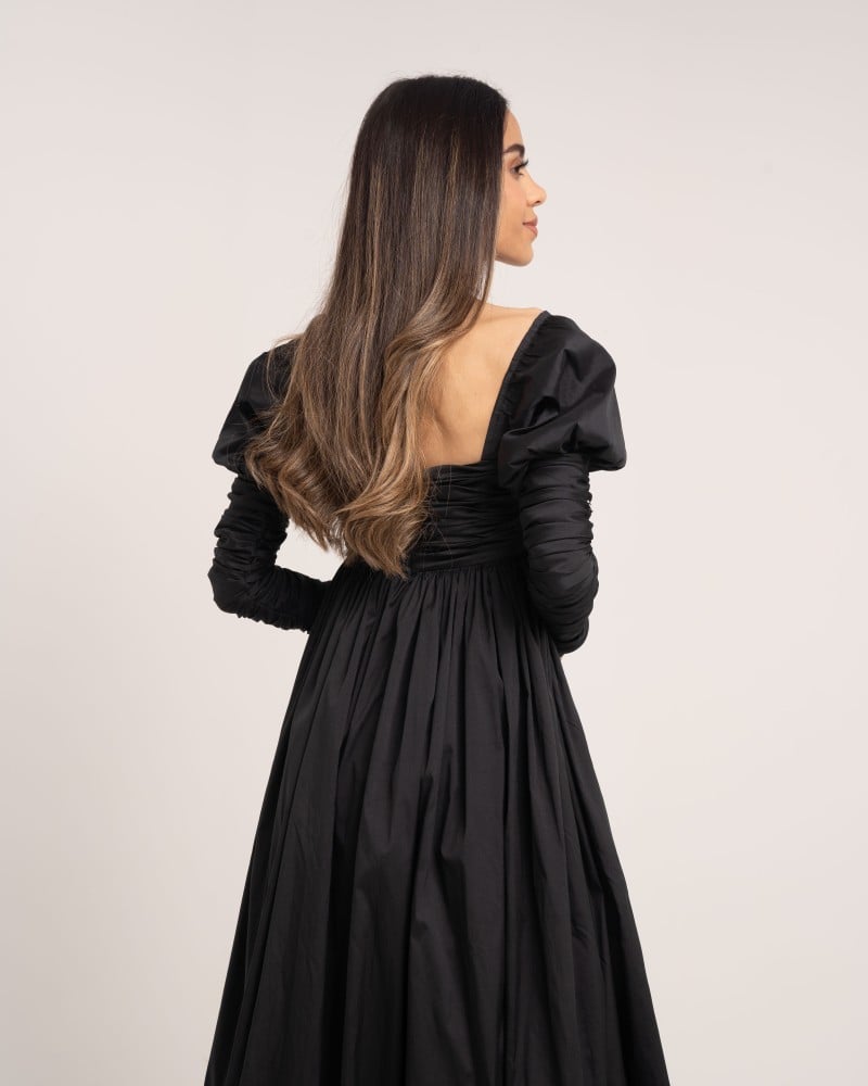 اخترنا لك اللون الاسود لتكوني جذابة ومميزه في مناسبتك صنع الفستان خصيصا لمحبي التألق والتميز والفخامة..♥️